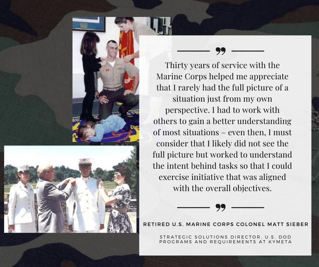 The quotes above are just a few of our veterans here at Kymeta and exemplify how their time in military service has instilled in them a sense of duty, unity, and leadership. The contributions of all our veterans are invaluable to Kymeta’s success, enhancing our team’s competence by working collaboratively towards driving our mission to support those who serve our nation.