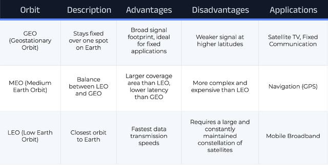 MEO (Medium Earth Orbit): Zone lies between GEO and LEO. MEO satellites offer a balance between coverage area and latency, making them well-suited for navigation systems like GPS.